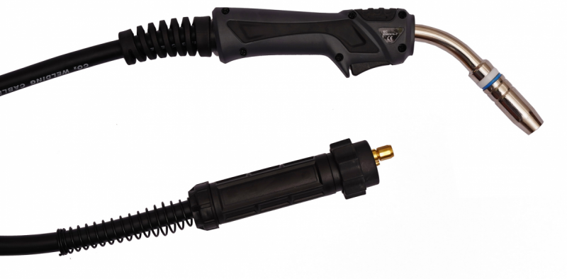 A pisztoly kék színű spirállal van szerelve, így 0.8 és 1.0 mm-es huzallal történő munkavégzésre áll készen.