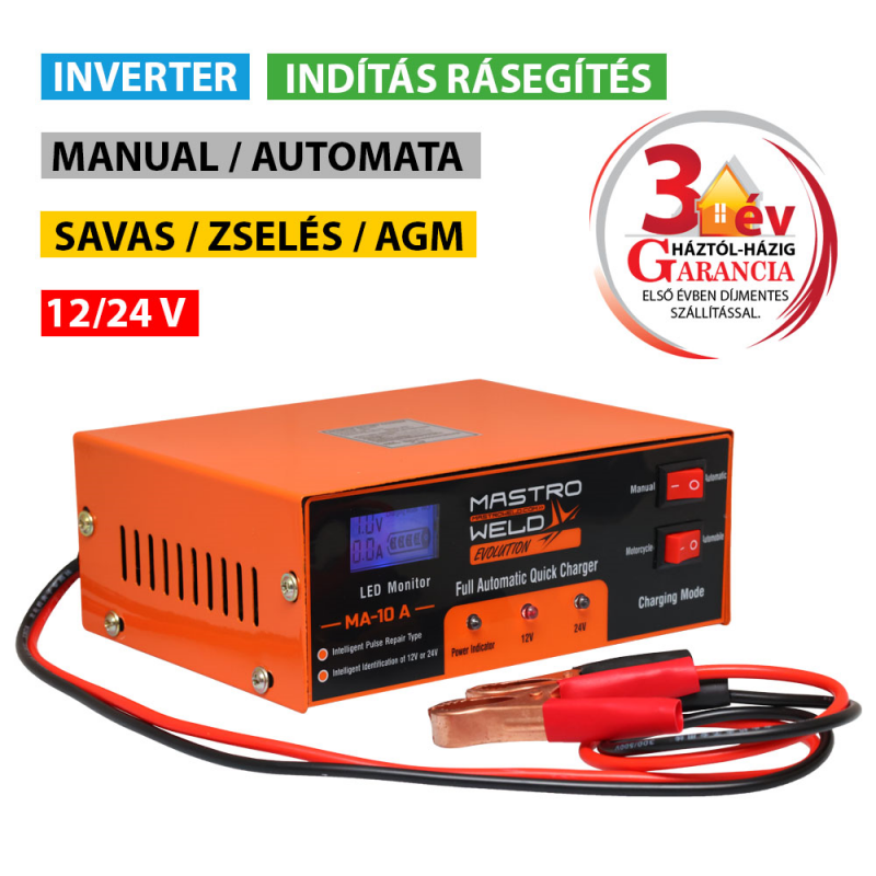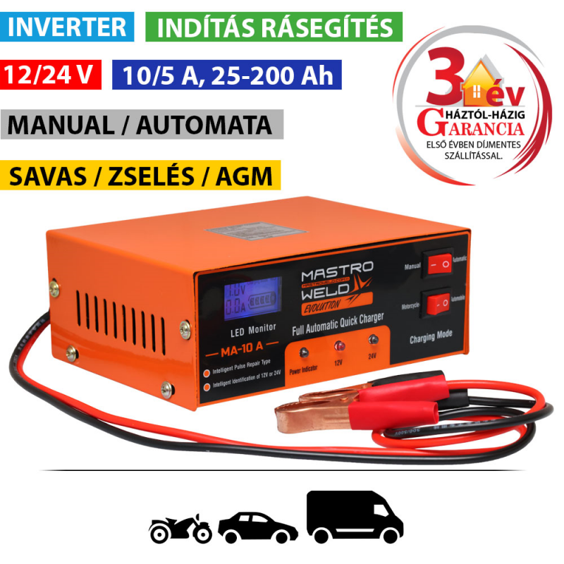 Motorkerékpár, személyautó és kis-teherautó, teherautó akkumulátorok töltésére.
