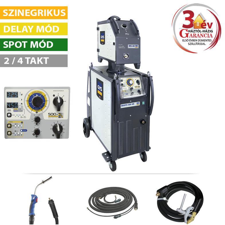 A MAGYS 500 GR külön előtolós huzaladagolóval egy „szinergikus” 3-fázisú MIG/MAG léghűtéses berendezés. A nagy teherbírású kialakítás ideálissá teszi ipari környezetben acél, rozsdamentes acél és alumínium hegesztésére. Az 5-10 méteres kábelek kiválóan alkalmasak intenzív munkához ø1,6 átmérőig.