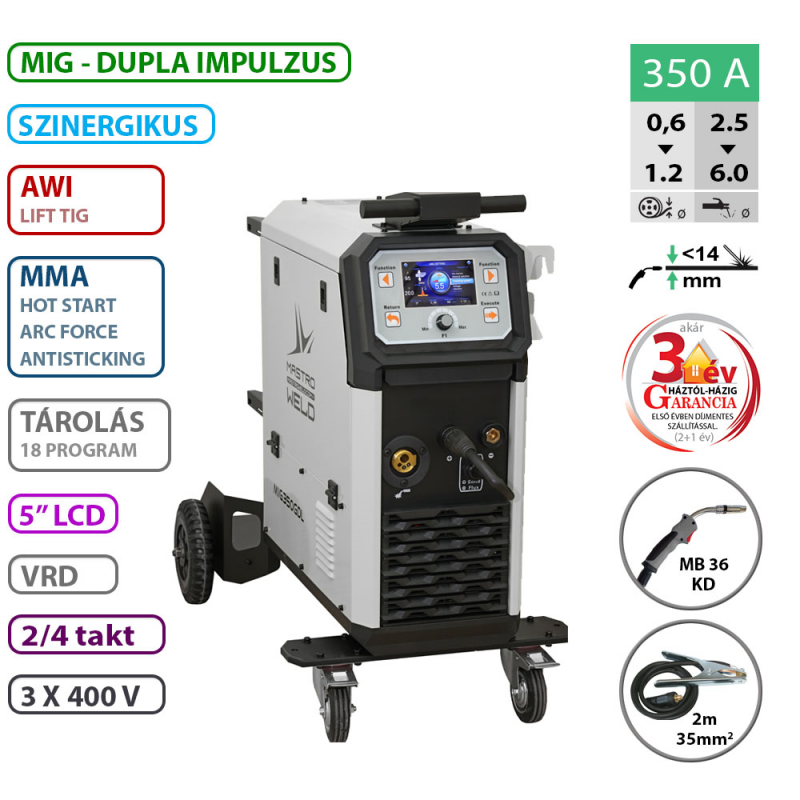 DC-MIG ∙ Impulzus MIG, Dupla impulzus MIG ∙ MMA (bevontelektródás) és Lift-TIG gyújtású AWI hegesztés