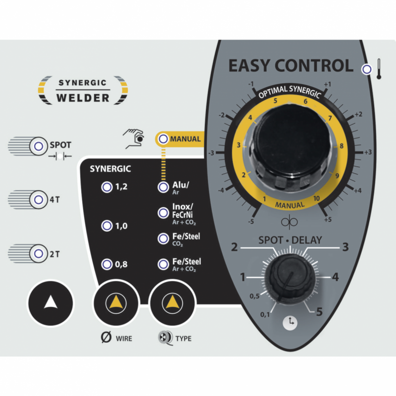 - Synergic beállítás: Nincs szükség a vezeték sebességének beállítására. Válassza ki a(z):